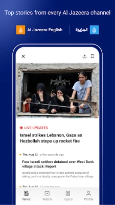 通过Al Jazeera | الجزيرة News应用,随时掌握突发新闻和深度报道。获取全球、美国头条、专家观点、政治更新、精彩内容及全面体育报道,轻松了解世界重要事件。